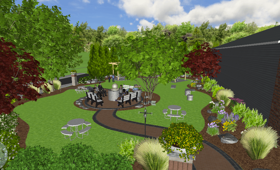 The team has established detailed plans for development of a park; the central focal point, a fountain surrounded by benches. The park will incorporate native plantings, trees, and seating areas which will be inviting for both residents and visitors to downtown businesses.